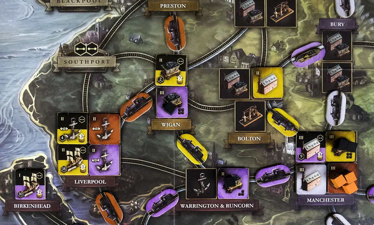 A lo largo de dos eras —Era de los Canales y Era del Ferrocarril— tu misión será conectar ciudades, producir recursos, vender al mercado y optimizar tu motor económico… todo mientras tus rivales intentan adelantarse con jugadas finas (y a veces despiadadas 😄).