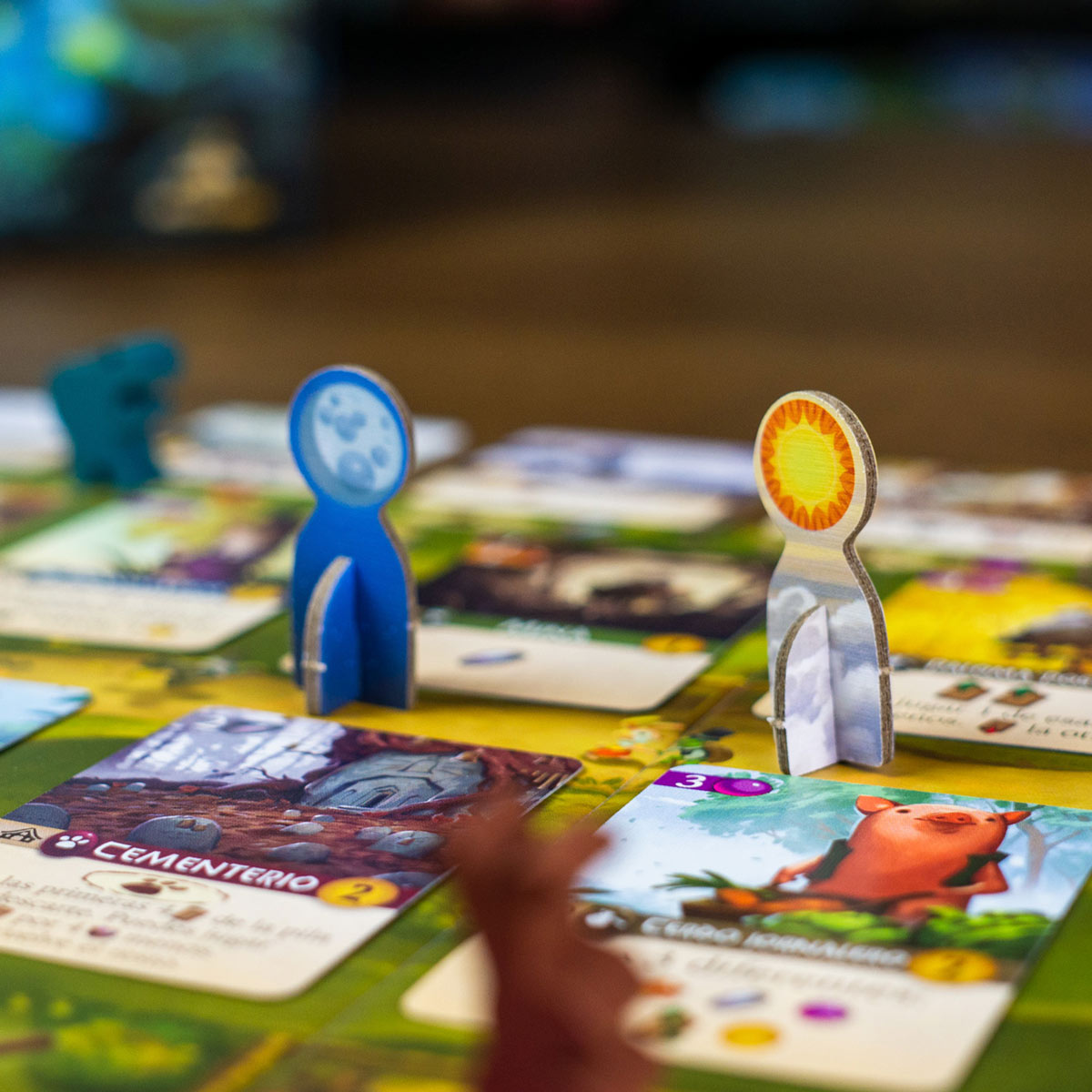 ☀️🌙 El Sol y la Luna cambian el prado, así que no todas las cartas están siempre disponibles: hay que planear muy bien el momento ideal para tomarlas.