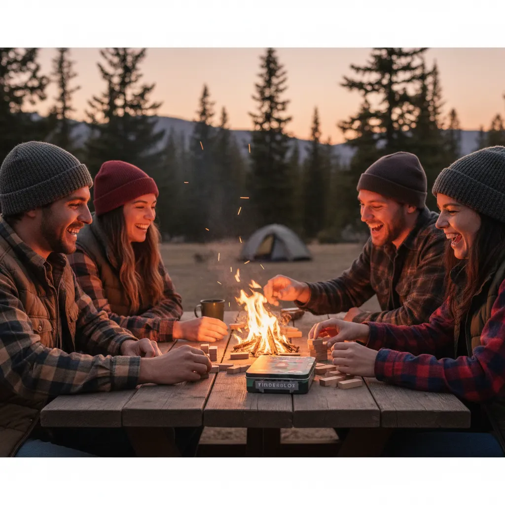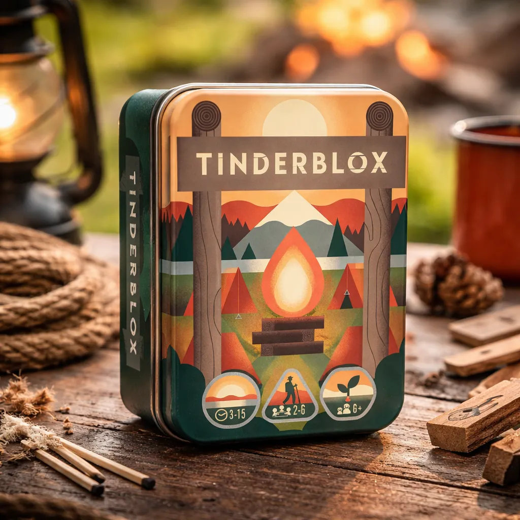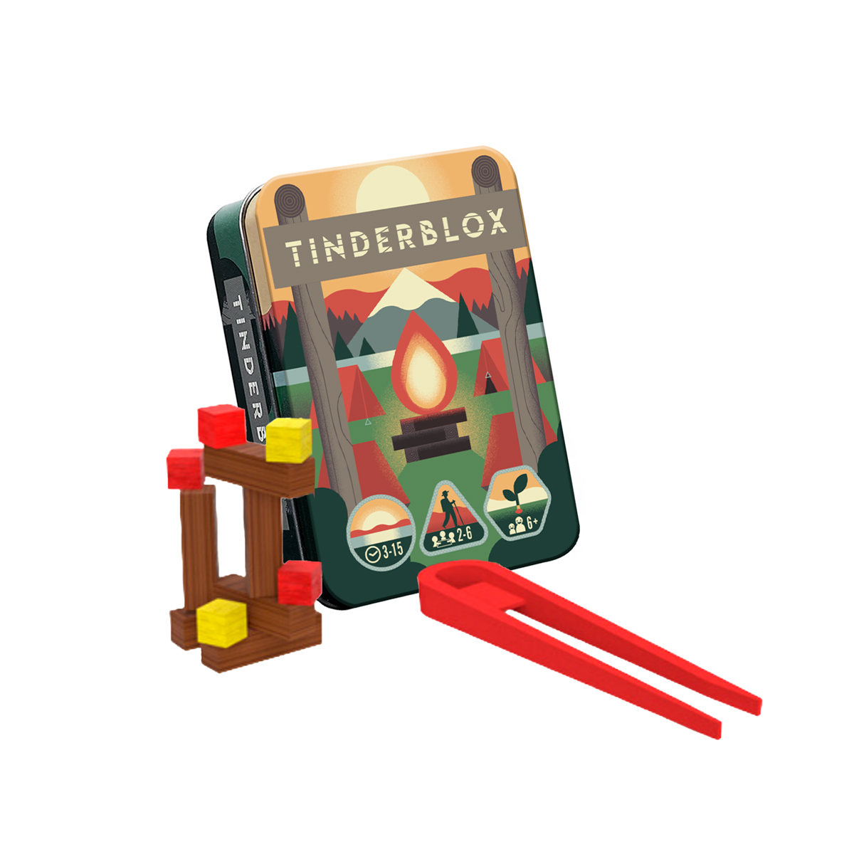Tinderblox es un juego de destreza en el que cada jugador se convierte en guardián de la fogata. Coloca troncos y brasas cuidadosamente, ¡pero ojo! un movimiento en falso puede hacer que todo el campamento se queme. Perfecto para partidas rápidas y llenas de tensión.
