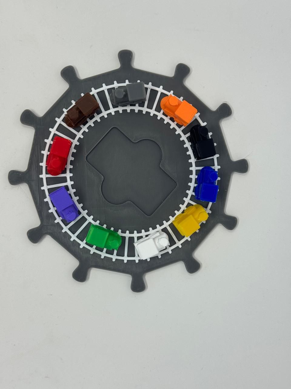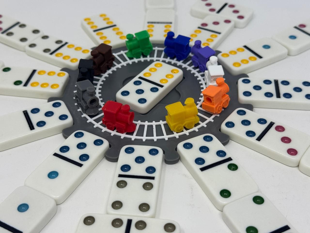 Dale orden y estilo a tus partidas de Tren Mexicano con esta base central de 12 slots (impresa en 3D). Su diseño circular tipo “estación” mantiene el centro del juego organizado, facilita la colocación de los dominós y hace que la mesa se vea mucho más limpia y temática desde el primer turno.